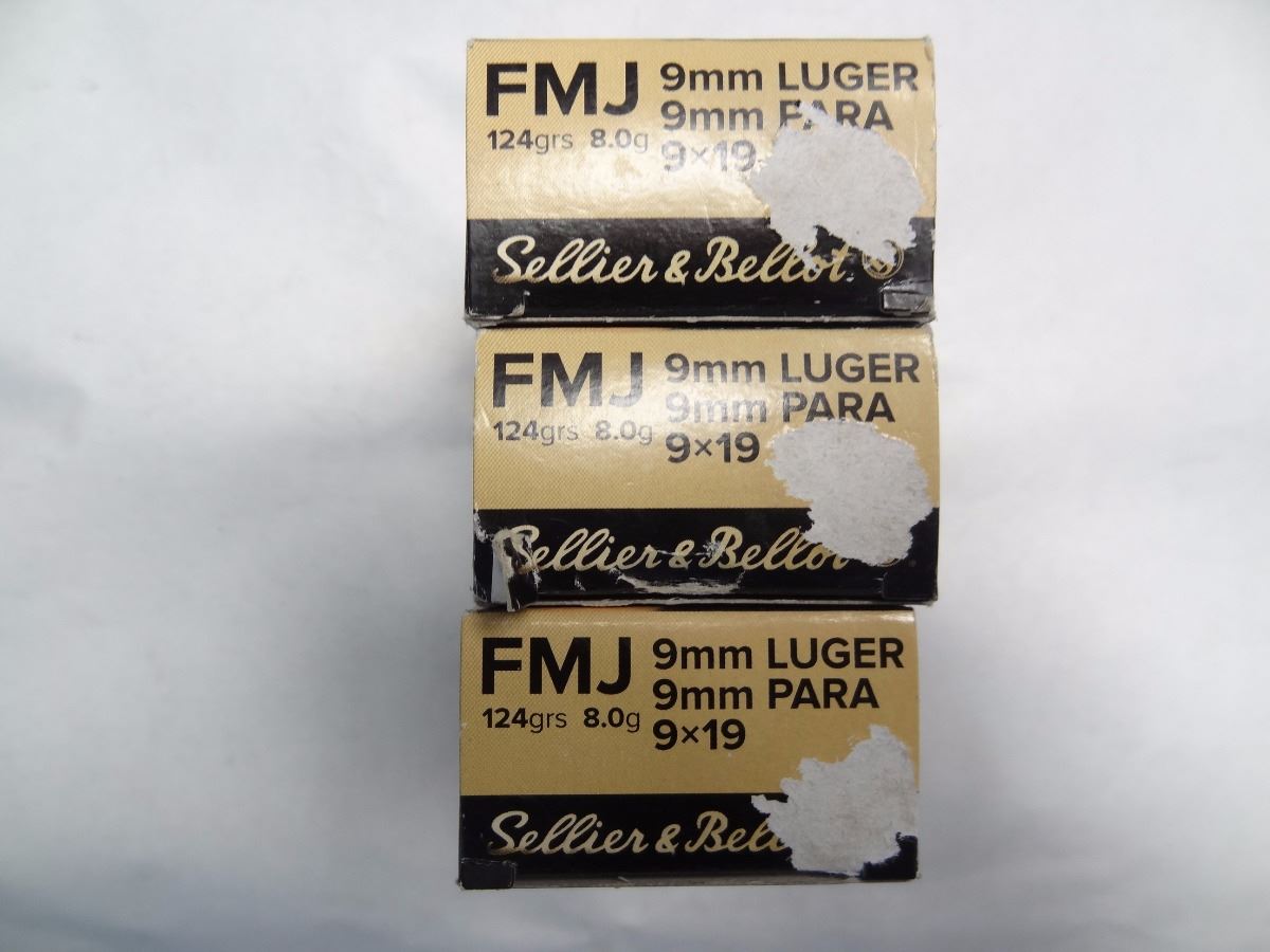 Lot 570 3 BOXES SELLIER & BELLOT 9MM LUGER 124GR FMJ