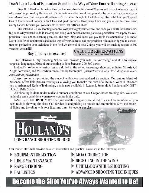 4 day long range shooting course for one person with Holland’s Long Range Shooting School. Additional students can be added for whatever the donation goes for.