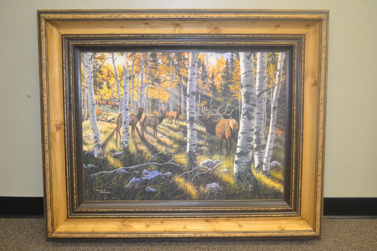Michael Melander is known throughout the western united states for his inspiring depictions of the great outdoors. As a third generation artist Michael has been painting Idaho scenery and wildlife for nearly 30 years. Michael has captured the fall excitement of a magnificent bull elk and his harem in a grove of Aspens.