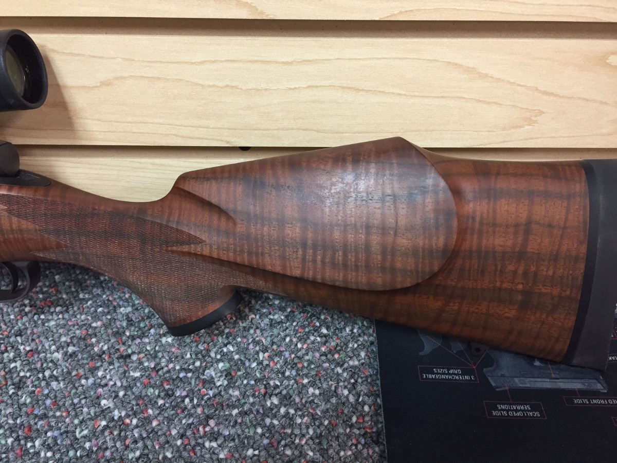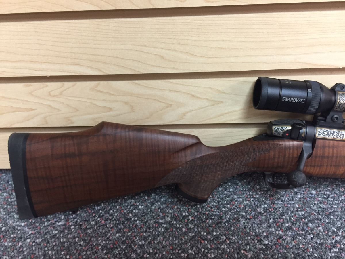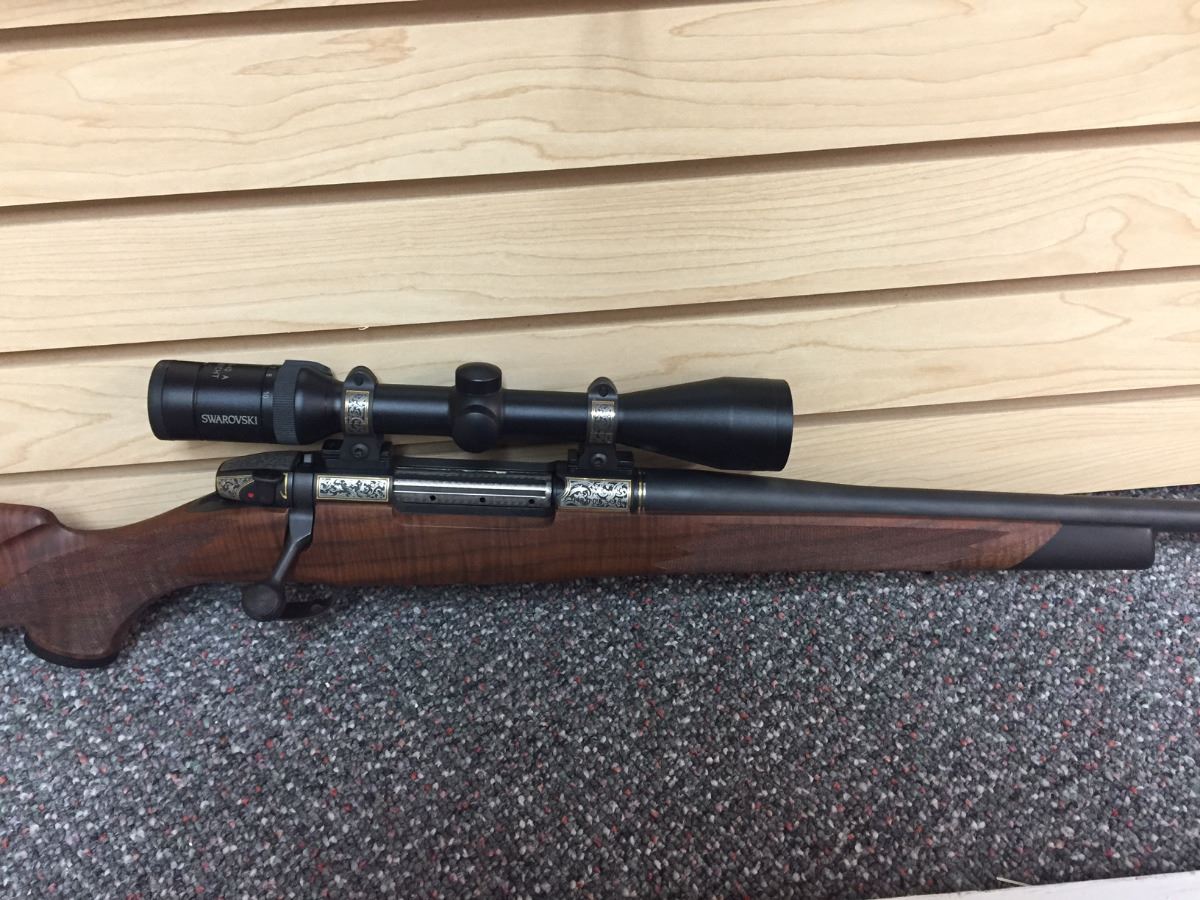 Rosenbruch Wildlife Museum has donated this elegant 300 Weatherby Mag Gloss B/A 26”. Created by Weatherby Inc. for the 50th anniversary of Weatherby Foundation International, this unique piece comes with a custom lock, a trial target, and a custom rifle case. Engraved on the barrel is “The Weatherby Hunting and Conservation 50th Anniversary Award 1 of 2.” Also included with this donation is the original paperwork from Weatherby Inc. (an owner’s manual and a 2-page rifle specs document).