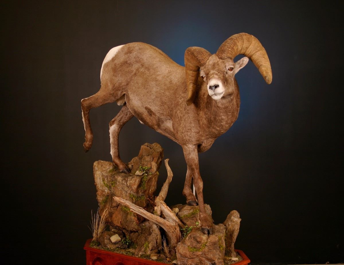 Zimmerman Wildlife has donated a life size North American sheep mount with a hardwood base and habitat. Shipping and crating are not included in this donation.
