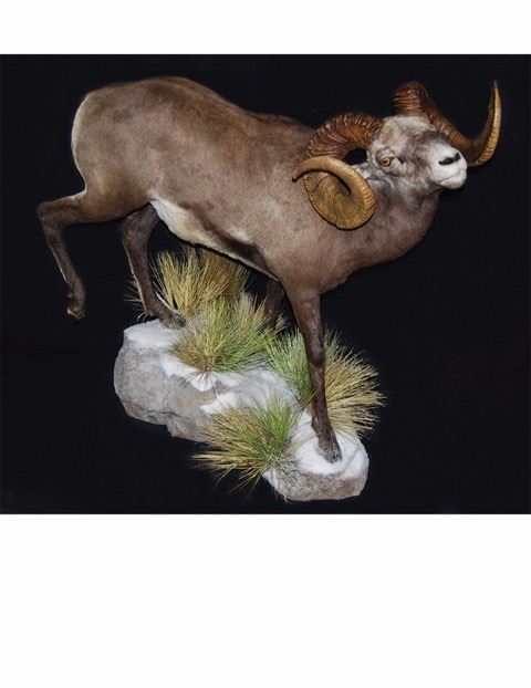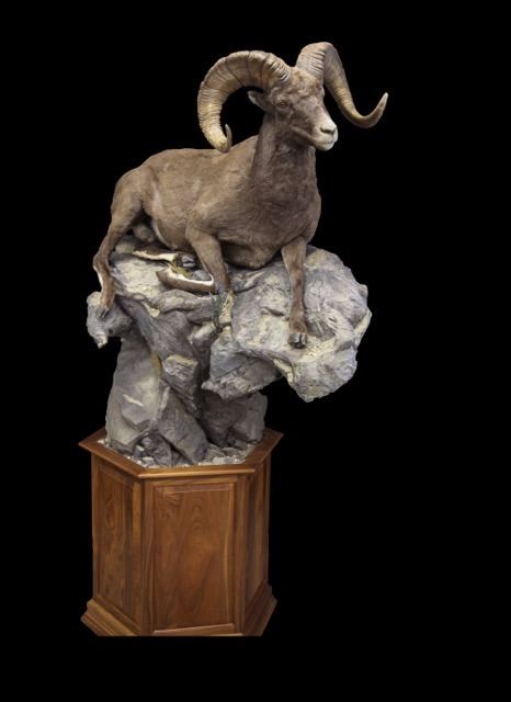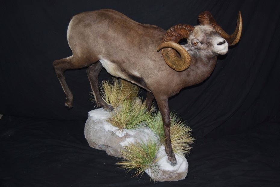LIFE-SIZE NORTH AMERICAN WILD SHEEP MOUNT WITH HABITAT AND WOODEN BASE
