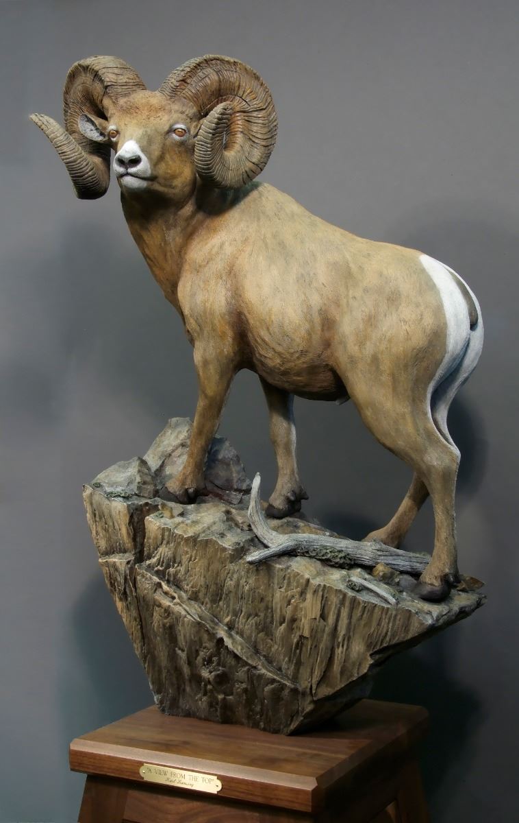 Donation: Karl Lansing was raised in the majestic northern Rockies of his native British Columbia. Karl has been a taxidermist and involved in the outfitting and guide business from a young age. He truly knows his subjects inside and out. He has tackled two things he felt were missing in other sculptors’ work, anatomical correctness and realistic detail. Karl’s intricate detail is apparent in this beautifully sculpted Rocky Mountain bighorn sheep. Karl has a passion for sheep and it show in this exquisite piece. This would display well in your home or office. It has a majesty all its own.