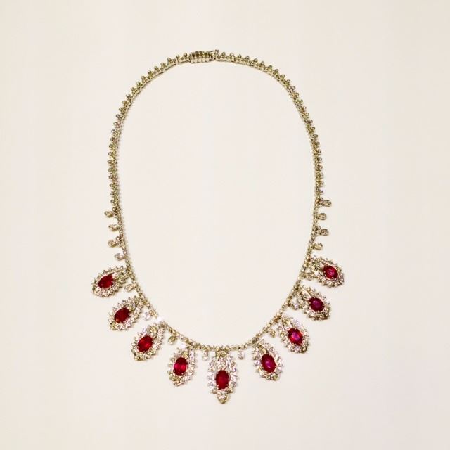 Lot 30 NATURAL RUBY & DIAMOND NECKLACE & EARRINGS ORIGIN OF RUBY - BURMA