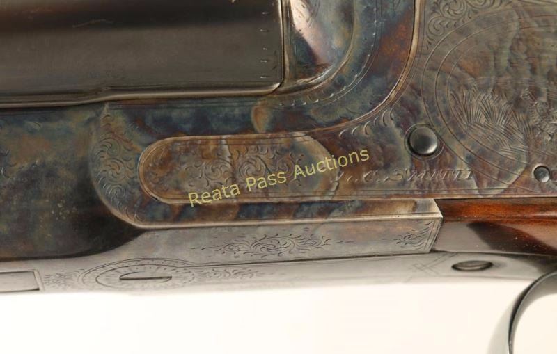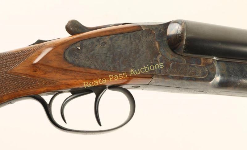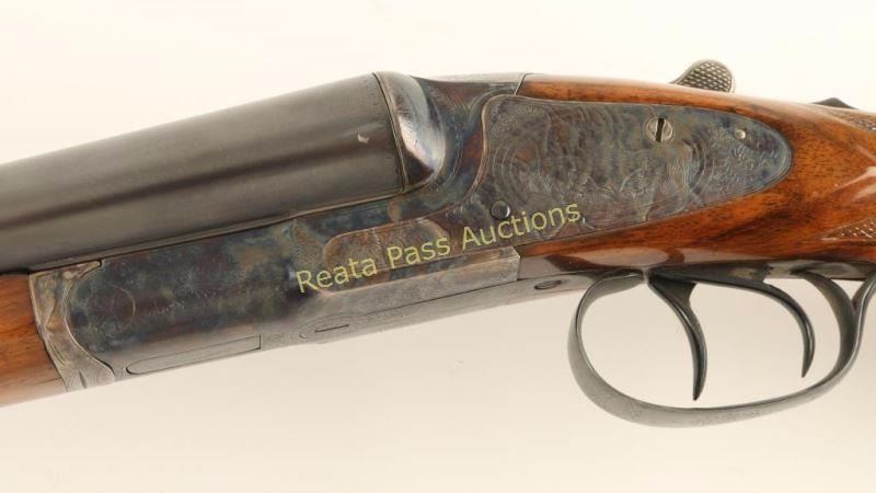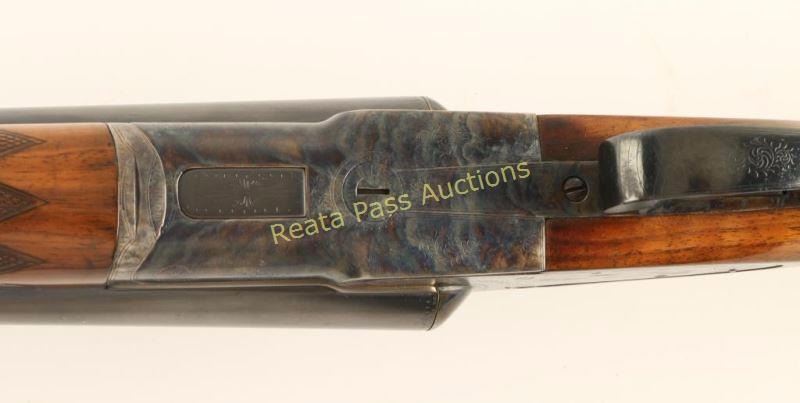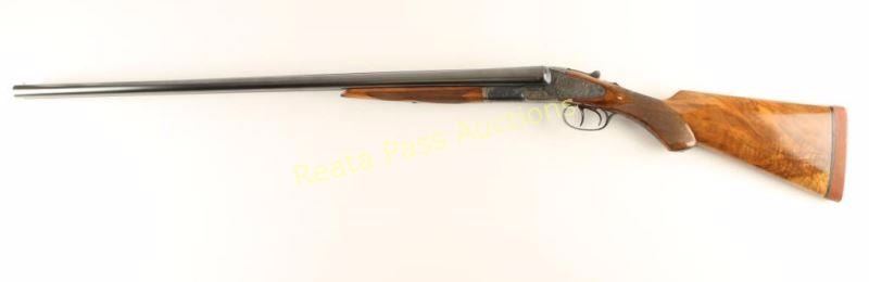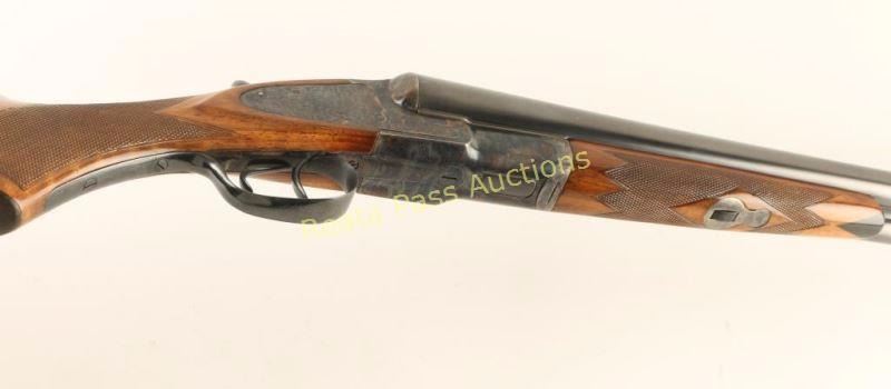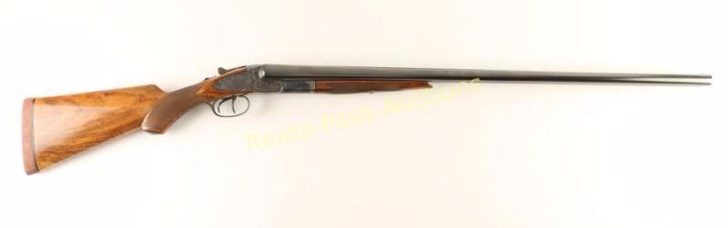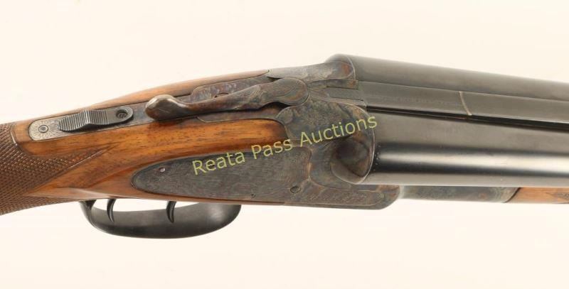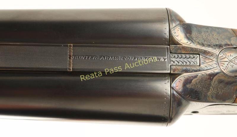 Early high quality American made side-by-side double barrel sidelock shotgun chambered for 12 gauge shells, circa 1907. Features 30" blued barrels with a raised matte rib marked "HUNTER ARMS CO. FULTON,N.Y.", automatic ejectors, double triggers, white bead front sight, case hardened receiver with fine scroll engraving & game bird scenes, checkered top lever, sliding tang safety, fancy checkered walnut forend with ebony inlay at the tip and pistol grip shoulder stock with black grip cap & unmarked recoil pad. Shotgun exhibits approximately 99% of it's refinish showing little wear, a few small imperfections under the finish and softened engraving/markings. Bores are excellent, action is sound, and refinished wood stocks are fine. Condition is excellent as refinished. ***C&R Firearm*** ***Modern Firearm***