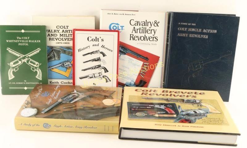 Including; "A Study of the Cold Single Action Army Revolver" by Ron Graham, C. Kenneth Moore, and John A. Kopec-signed by Kopec, "The Colt Whitneyville-Walker Pistol" by Lt. Col. Robert D. Whittington, III, " Colt Cavalry & Artillery Revolvers" By John A. Kopec and H. Sterling Fenn-signed by Kopec, First Edition, "Colt Cabalry, Artillery and Militia Revolvers (1873-1903) by Keith Cochran, signed by author-First Edition, "Colt's History and Heroes" by John G. Hamilton signed by author, "A Study of the Colt Single Action Army Revolver" by Ron Graham, John A. Kopec, and C. Kenneth Moore, signed by Kopec, 30th Anniversary Edition, and "Colt Brevete Revolvers" by Roy Marcot & Ron Paxton-First Edition.