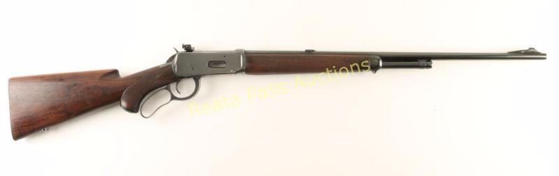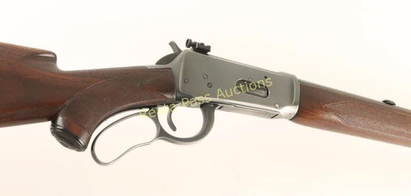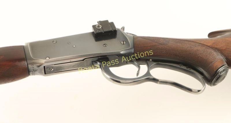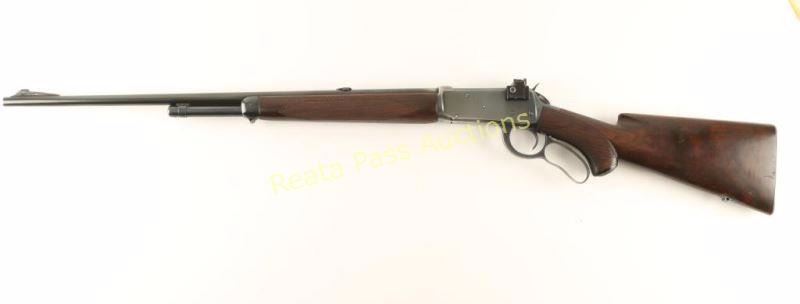 Deluxe lever action repeating rifle chambered in .30-30 Winchester, circa 1951. Features a blued finish, 24 5/16" barrel, half length tube magazine, ramped blade front sight, Marble's sight blank inserted into rear dovetail, Williams side mounted peep sight, serrated hammer spur, smooth trigger, grip safety, metal forend cap with integral swivel sling, checkered walnut semi-beavertail forend and pistol grip shoulder stock with inset sling swivel, factory pistol grip cap & checkered metal shotgun buttplate. Rifle exhibits approximately 90% of it's original blued finish showing light wear and few scratches. Action is strong, bore is pristine, markings are crisp, and wood stocks are very good+ with semi-worn checkering & finish loss. Condition is very good++. ***C&R Firearm*** ***Modern Firearm***