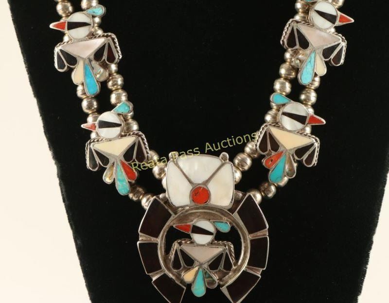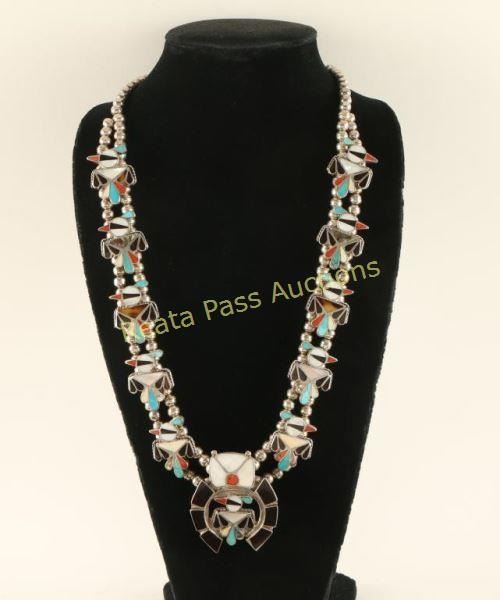 Lot 273 Outstanding Zuni Inlay Squash Blossom Necklace