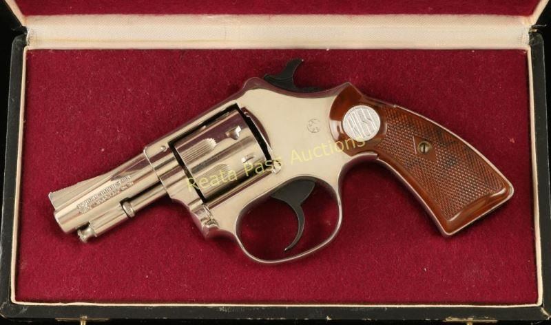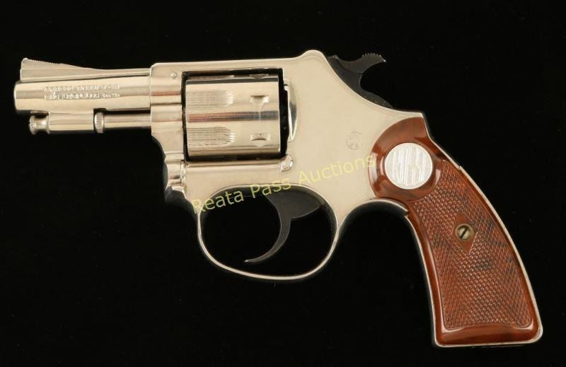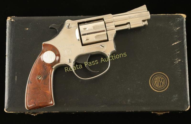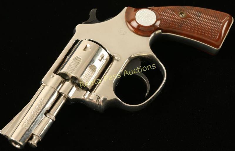 'Princess' Brazilian made double action revolver chambered in .22 Long Rifle. Features a nickel plated finish, ribbed 2" barrel, ramped blade front sight, notched rear sight, fluted seven-shot cylinder, smooth trigger, serrated hammer spur and checkered two-piece faux wood grips. Includes the factory display case with purple felt lining. Finish shows no major losses, only a light dragline and a few superficial scratches were observed. Action performs well, lock-up is good, bore is excellent and grips are fine. Condition is near excellent. ***Modern Firearm***