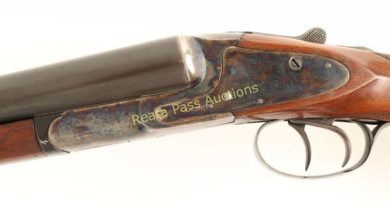 Refinished side-by-side double barrel sidelock shotgun chambered of 12 gauge shells. Features blued "Hunter Arms" marked 30" barrels with raised concave rib & extractors, brass bead front sight, case hardened receiver marked "L.C. Smith", sliding tang safety, double triggers, checkered top lever, smooth wood forend and checkered pistol grip wood shoulder stock with Comet recoil pad. The refinished received boasts vivid colors and sharp markings and the reblued barrels exhibits approximately 94% of their finish with light wear at the breech & muzzle. Action is smooth, bores are bright and wood stocks are good+ with light nicks & scrapes. Condition is very good as refinished. ***Modern Firearm***