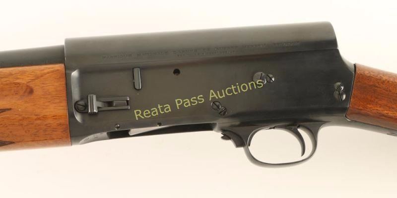 Belgium made semi-automatic shotgun chambered for 2 3/4' 12 gauge shells, circa 1923. Features a blued refinish, 27.5" barrel, raised bead front sight, 1/2 length tube magazine, sliding safety in front of the triggerguard, polished bolt with checkered charging handle, smooth trigger, sling swivel on the magazine tube cap, checkered walnut forend and smooth straight grip shoulder stock with aftermarket recoil pad. Shotgun exhibits approximately 97% of it's fine blued refinish showing light wear and few imperfections under the bluing. Action is crisp, bore is near excellent with some light pitting and wood stocks are fine. Condition is excellent as refinished. ***C&R Firearm*** ***Modern Firearm***