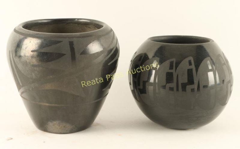 Lot 380 Collection of 2 Blackware Santa Clara Pots