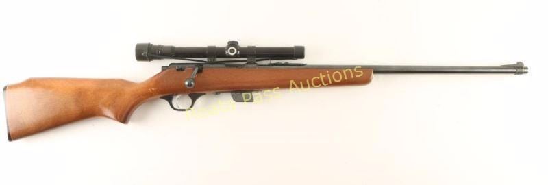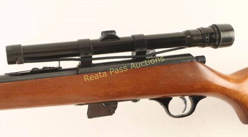 Magazine fed bolt action sporting rifle chambered in .22 Short, Long or Long Rifle. Features a blued finish, 22" barrel, ramped patridge front sight, adjustable rear sporting sight, Weaver V22-A 3-6x scope, manual safety, detachable magazine, serrated trigger and one-piece pistol grip wood shoulder stock. Rifle exhibits approximately 90% of it's original blued finish showing light scattered wear and few spots of light surface rust. Action is smooth, microgroove bore is very good and wood stock shows holes from previous swivel stud install & a couple scrapes. Condition is good. ***Modern Firearm***