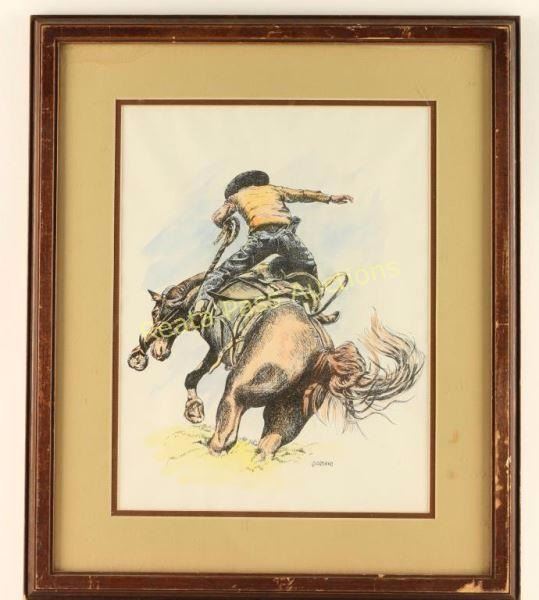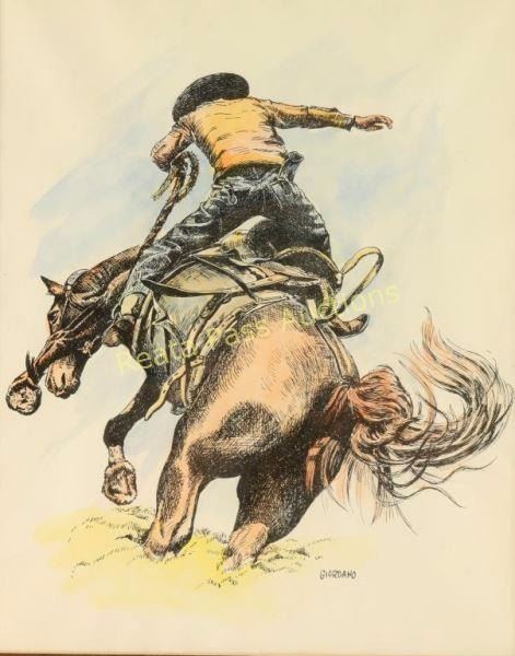 by Giorano depicting a cowboy on horseback measures 10"X12".
