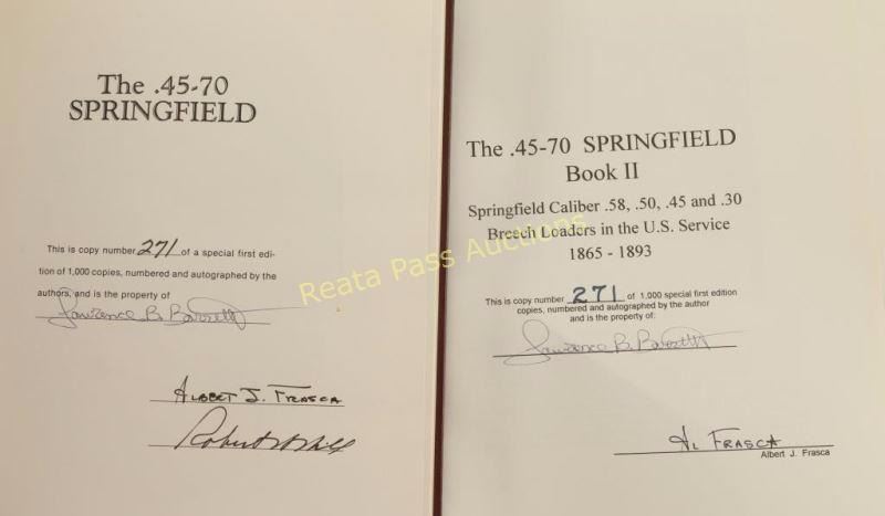"The .45-70 Springfield" by Albert J. Frasca, Ph.D. and Robert H. Hill and "The .45-70 Springfield Book II 1865-1893" by Albert J Frasca, Ph.D. Both are first editions 271/1000 and are signed by the authors.