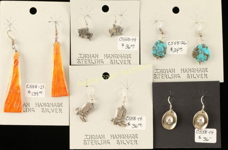 Sterling Cowboy Hats, Sterling Cowboy boots, Turquoise Drops, Spiny Oyster Earrings, and Sterling Buffaloes.