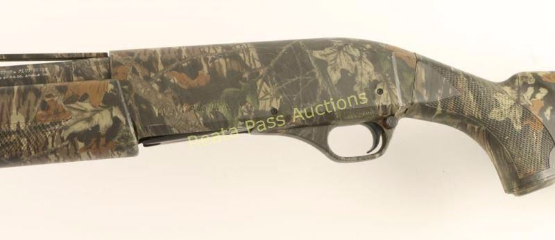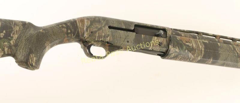 Belgium made semi-automatic shotgun chambered for 2 3/4", 3" & 3 1/2" 12 gauge shells, produced by Fabrique Nationale. Features a Mossy Oak Break-Up camo finish, 26" vent rib barrel with Invector Plus full choke, bead front sight, 1/2 length tube magazine, smooth trigger, serrated charging handle, push button safety, swivel studs, checkered synthetic forend and pistol grip shoulder stock with factory recoil pad. Shotgun exhibits approximately 96% of it's camo finish showing only few losses on the receiver. Action is smooth, bore is very good but is dirty and stocks are fine. Condition is very good++. ***Modern Firearm***