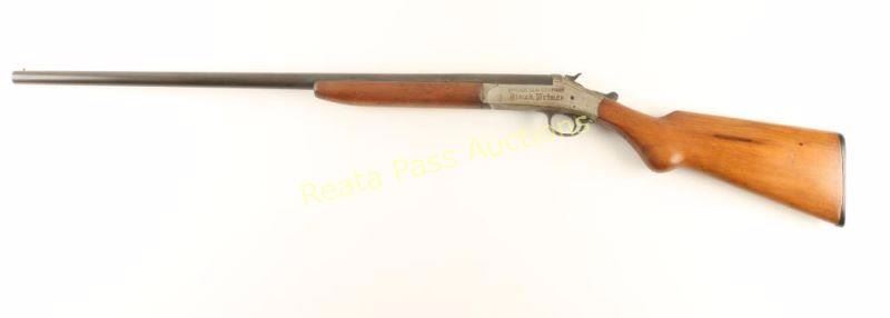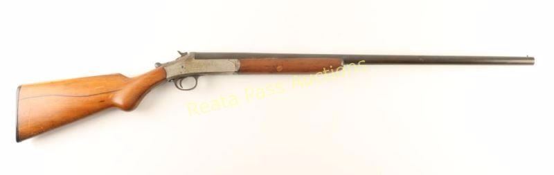 Trade name break-open single shot shotgun chambered for 16 gauge shells. Features a blued 28" barrel, auto-ejector, bead front sight, 'u' notched rear sight, nickel plated receiver, smooth trigger, checkered top lever & hammer spur, smooth wood forend and pistol grip shoulder stock with serrated black plastic buttplate. Blued barrel has drifted to a brown patina and receiver shows a flaking & dulled nickel finish with scattered surface rust. Action is strong, bore is rusty, and wood stocks are good showing cracks. Condition is fair to good. ***Modern Firearm***