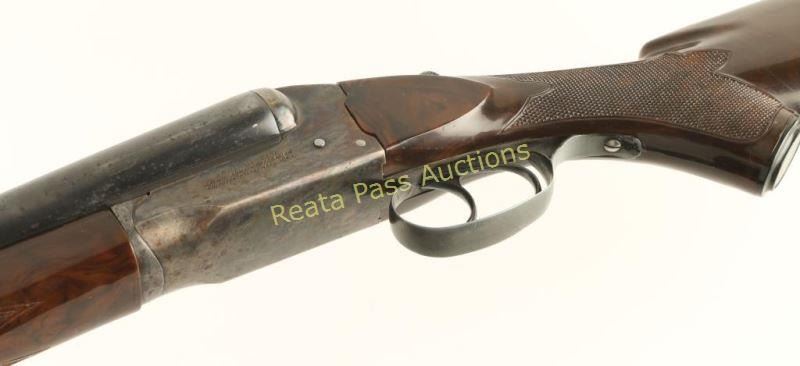 Vintage double barrel side-by-side boxlock shotgun chambered for 2 3/4" 12 gauge shells. Features 30" blued barrels with solid raised rib, extractor, bead front sight, double triggers, checkered top lever, case hardened receiver, auto tang safety, checkered faux wood Tenite forend and pistol grip shoulder stock with integral buttplate. Rifle exhibits approximately 70% of it's original finish showing scattered light surface rust throughout. Action performs well, bores are good and Tenite stocks show numerous small rubs & scrapes but are also good. Condition is near good. ***C&R Firearm*** ***Modern Firearm***