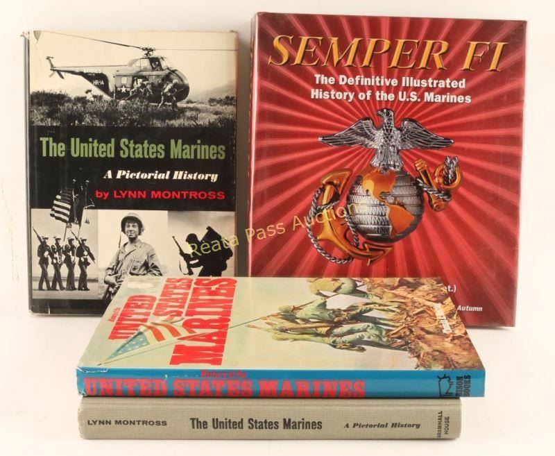 Including; "The United States Marines" 2 copies by Lynn Montross, "History of the United States Marines" by Thomas A. Siefring, and "Semper Fi" by Col H. Avery Chenoweth USMCR (Ret.)