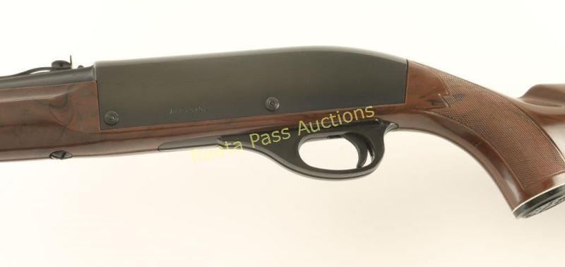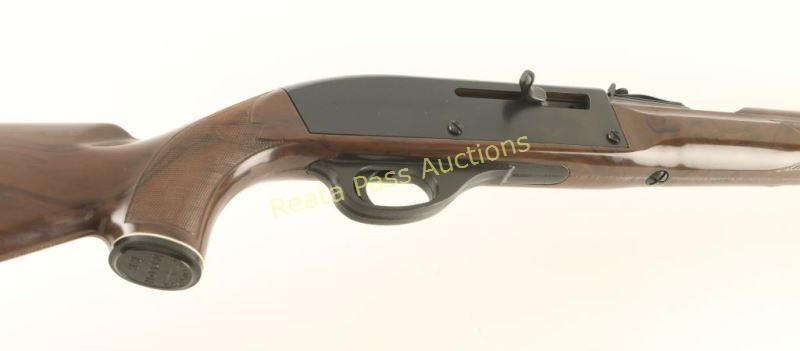 'Mohawk' Tube-fed semi automatic sporting rifle chambered in .22 Long Rifle, circa 1970's. Features a blued finish, 19.5" barrel, ramped blade front sight, adjustable rear sporting sight, serrated trigger & charging handle, integral scope rails on receiver, sliding tang safety, tubular magazine and checkered brown nylon pistol grip shoulder stock. Rifle retains approximately 99% of it's blued finish with very little wear observed. Action performs well, bore is very good and nylon stock is fine with only a few small scratches. Condition is excellent. ***Modern Firearm***