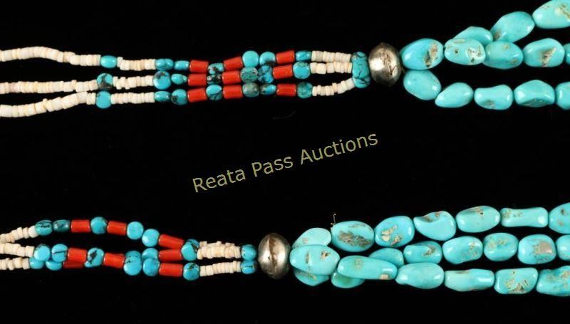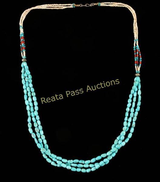 Lot 898 Navajo 3 Strand Turquoise Necklace