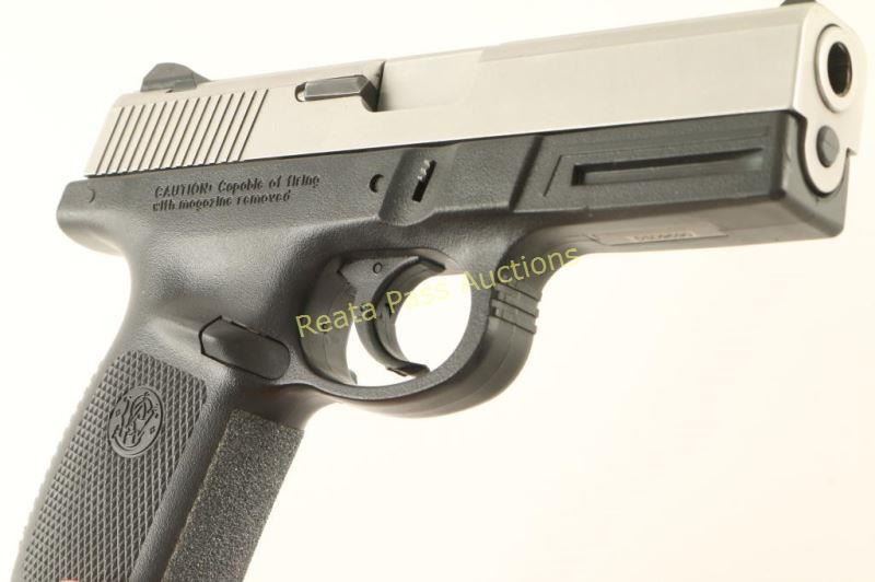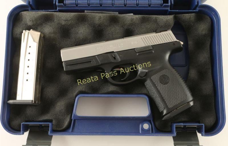 'Enhanced Sigma' Striker fired semi-automatic pistol chambered in 9mm. Features a matte finished stainless steel slide & 4" barrel, three dot sights, Saf-T trigger, push button magazine release, 17 round magazine, and black polymer frame with integral grips & accessory rail. Includes a factory hard case with lock and extra magazine. Pistol exhibits only light use with the only drag wear on the top of the barrel observed. Action is crisp, bore is excellent and polymer frame id fine with grip tape added to the front strap. Condition is excellent. ***Modern Firearm***