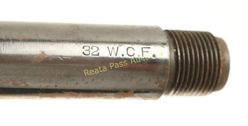 For a 32-20 first gen, old re-blued finish for a 4 3/4" barrel, good crisp markings, scattered rust on barrel. Includes hammer.