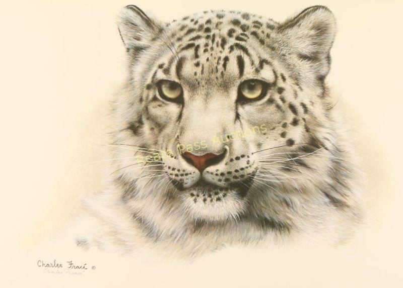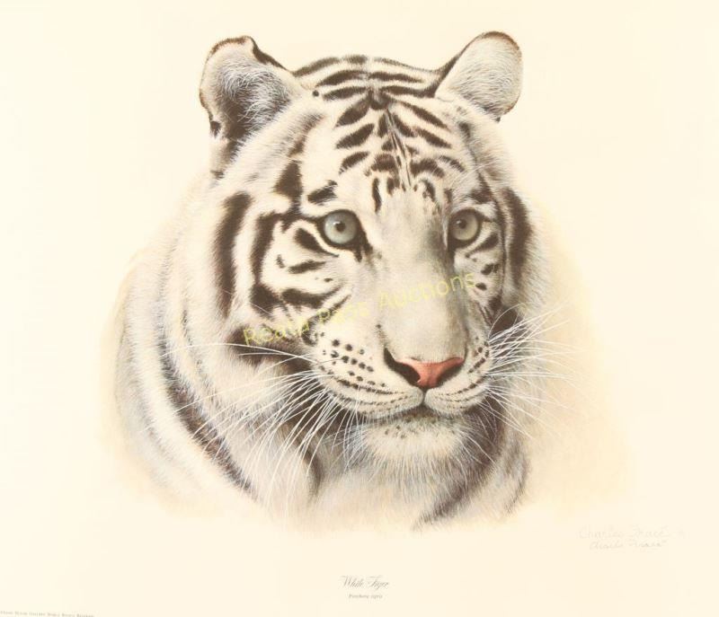 "Snow Leopard" hand signed lower left and "White Tiger" hand signed lower right. Both by Charles Fracé, from Frame House Gallery-Limited Edition Collector Prints, unframed. Prints measure 16"x20" overall, come in protective folio and include artist's bio.