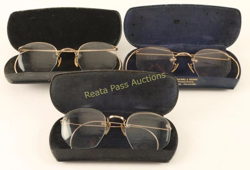 Lot 1027 Lot of 3 Old Pairs Eyeglasses