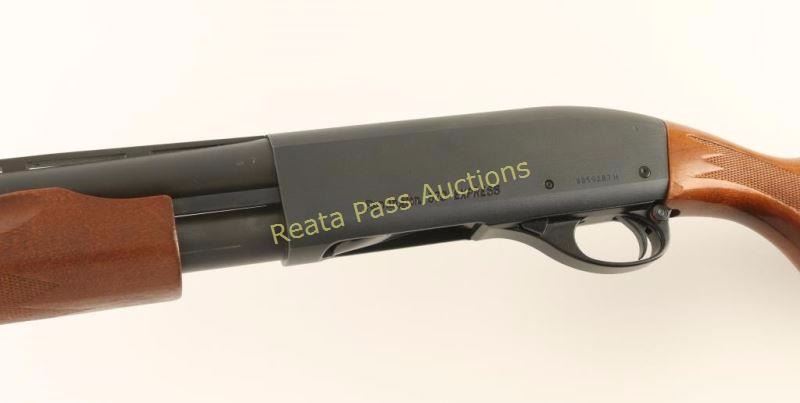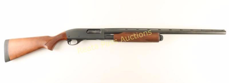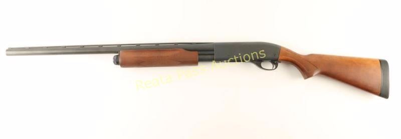 Slide action repeating shotgun chambered for 2 3/4" & 3" 12 gauge shells. Features a parkerized finish, 25.5" vent rib barrel with removable choke, bead front sight, 1/2 length tube magazine, beveled trigger, push button safety, checkered wood slide handle and pistol grip shoulder stock with factory recoil pad. Shotgun exhibits approximately 99% of it's original finish with only a couple small nicks to the ventilation rib observed. Action is smooth, bore is very good, barrel has a little play from left to right and wood stocks are fine. Condition is excellent. ***Modern Firearm***