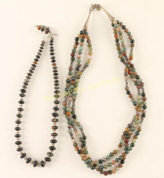 Lot 1044 Collection of 2 Green Stone Necklaces