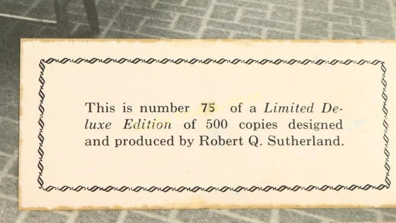 by R.Q. Sutherland & R.L. Wilson, signed by Sutherland, leather deluxe edition #75/100. Comes in hardcover dust jacket. Fair to good condition, some staining on front and back pages.