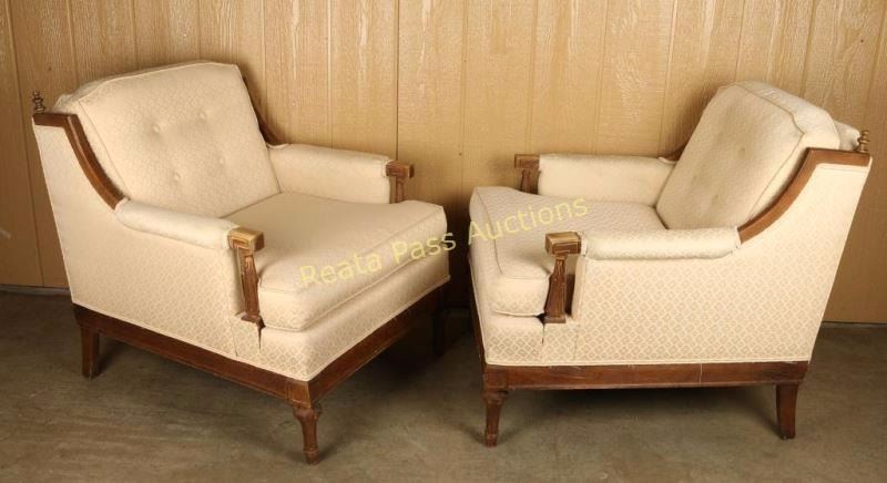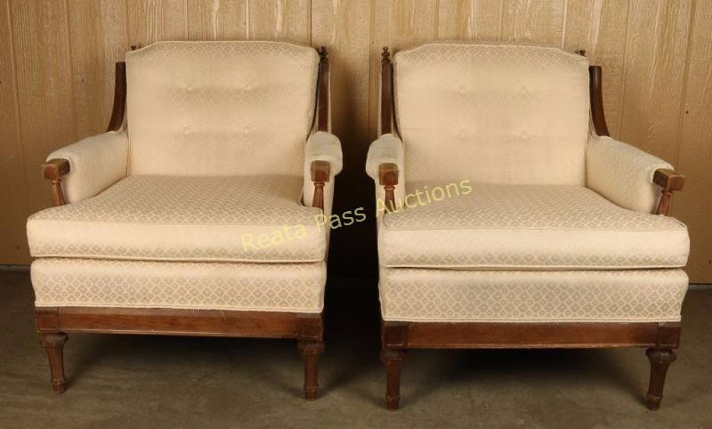 Cream colored silk fabric seats, button back traditional design. Measures 29" tall 27"wide.