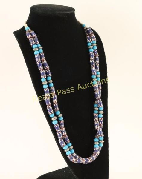 Lot 1083 Cobalt Trade Bead Chevron Necklace