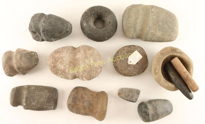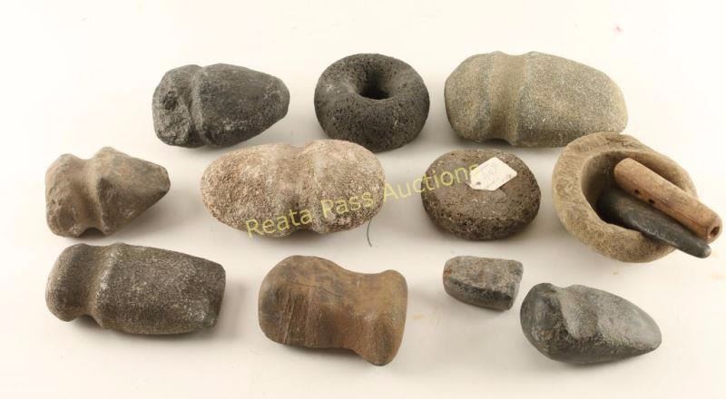 Grinding stones, mortar and pestle, and a stone ring. Unknown age or origin. Offered "as is", we don't guarantee the authenticity of this item, please do your research. All sales are final.