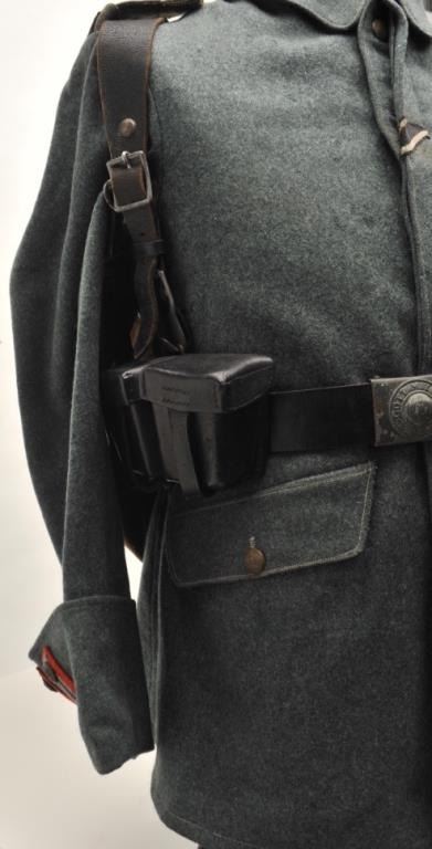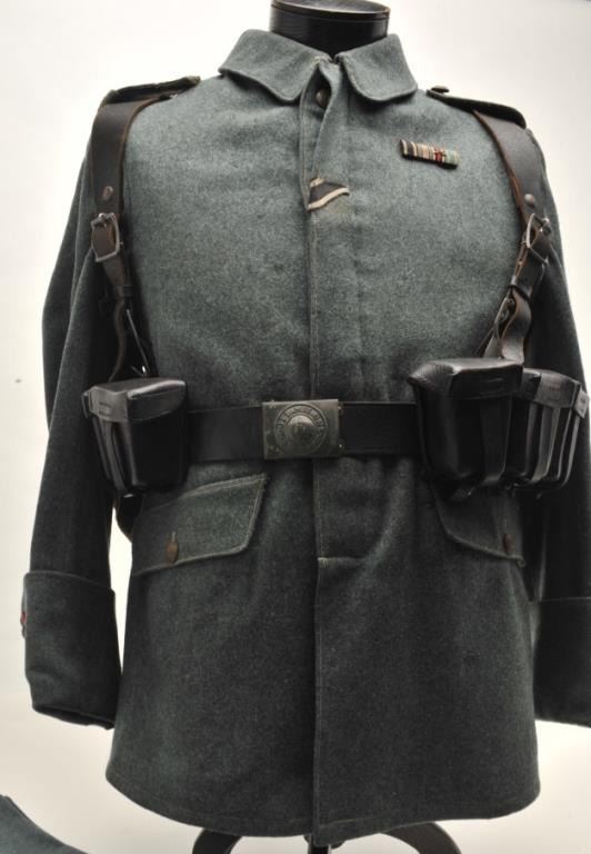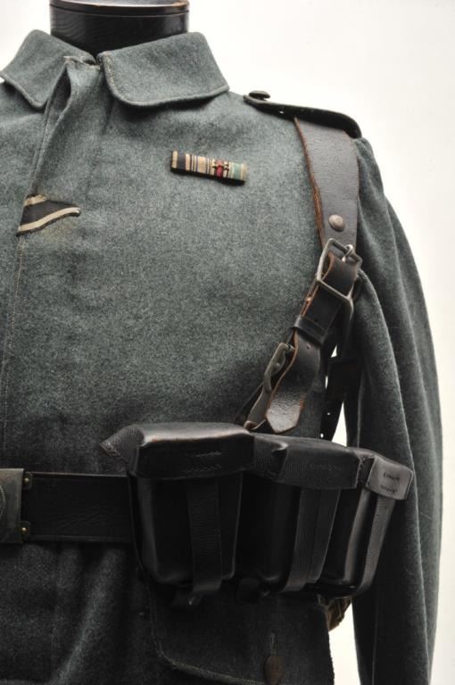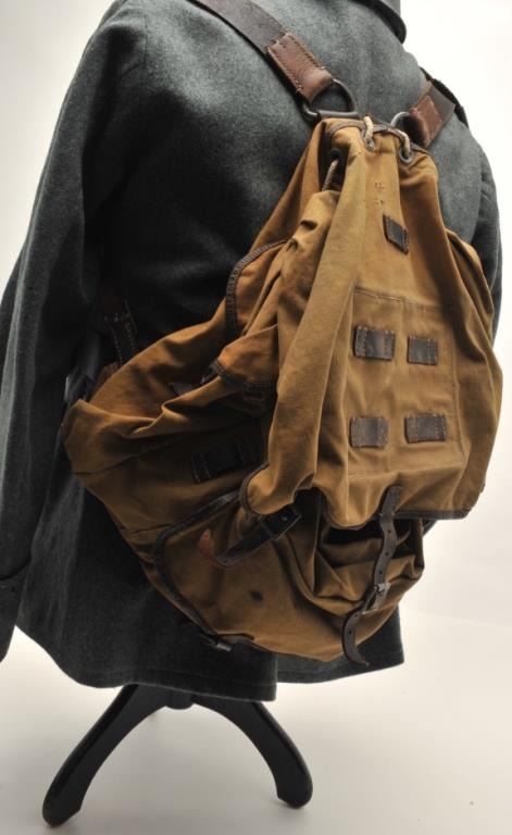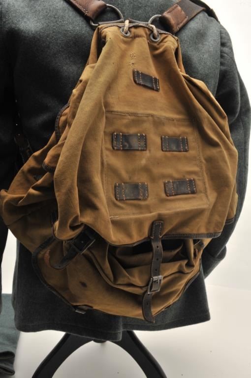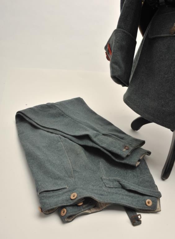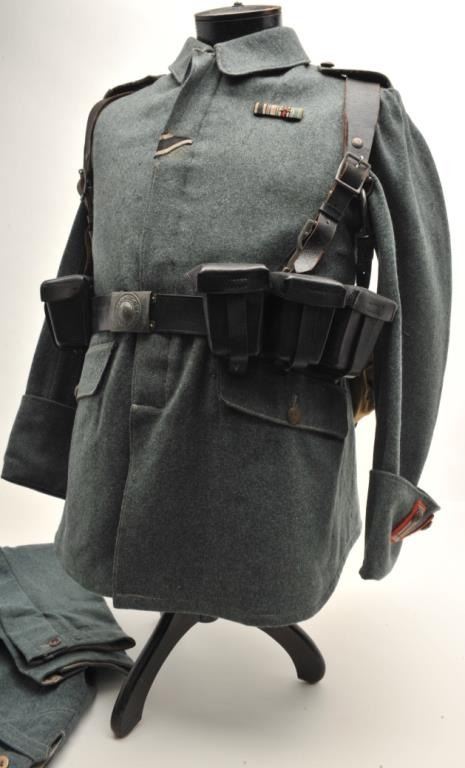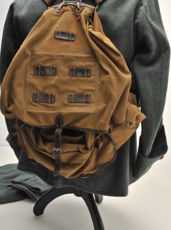 1915 Pattern Aviation personnel E.M. blouse, trousers, feldmutz, belt and buckle, ammo boxes and rucksack in overall good condition. Est.: $400-$800.