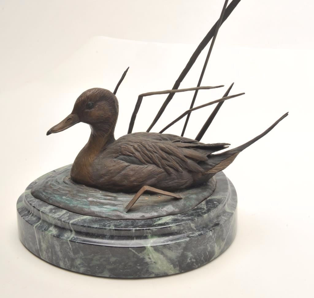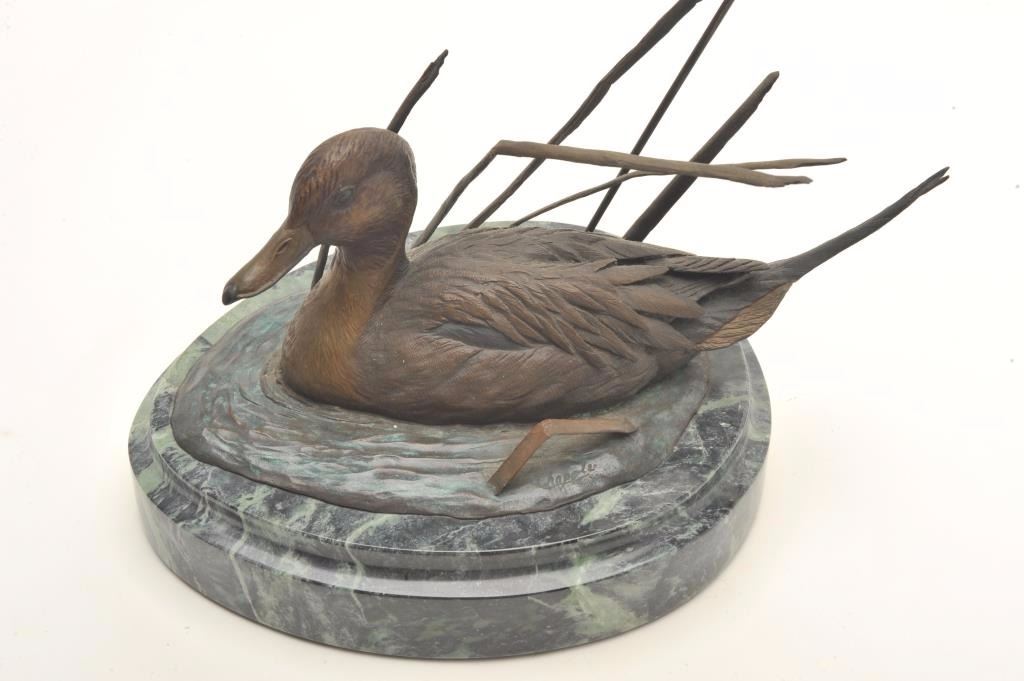 Lot 56 Nicely detailed and polychromed bronze of a pintail duck in reeds by Chapple, #96/125, mounted on
