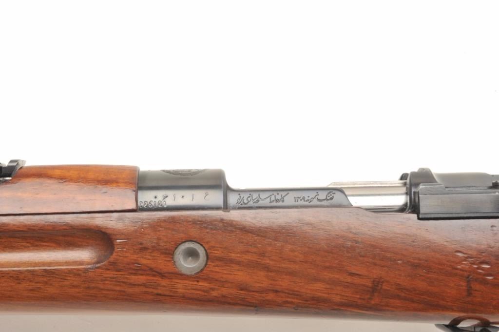Lot 57 Persian Mauser bolt action rifle, 7.92mm caliber, 29.5” barrel, blued finish, wood stock, import m