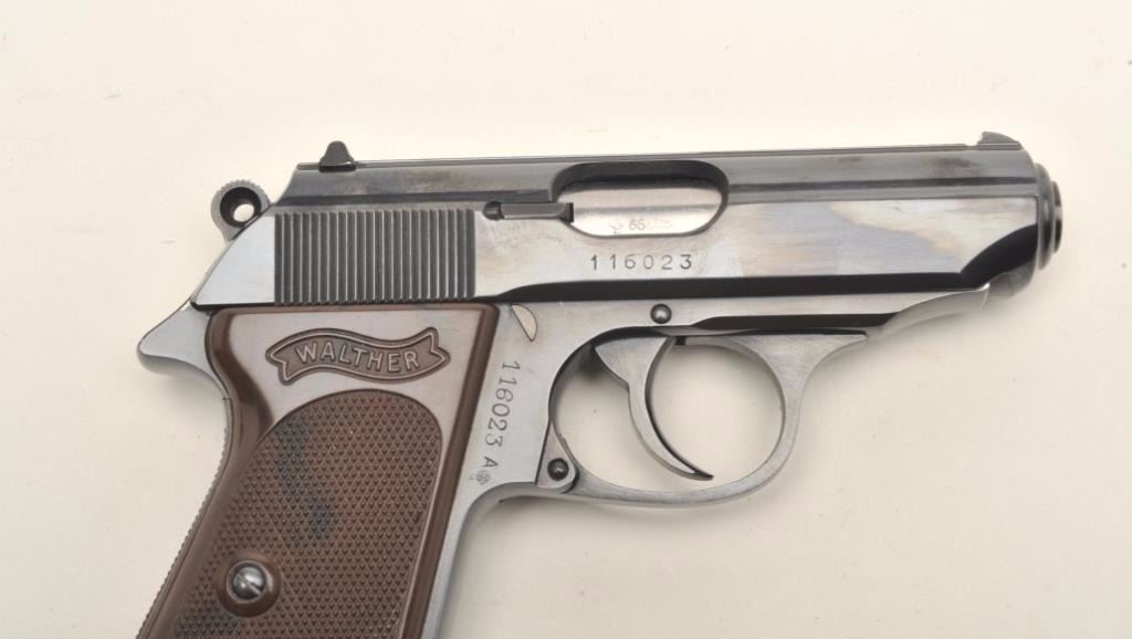 Lot 61 Walther PPK semi-automatic pistol, 9mm Kurz caliber, serial #116023A. The pistol is in very good t