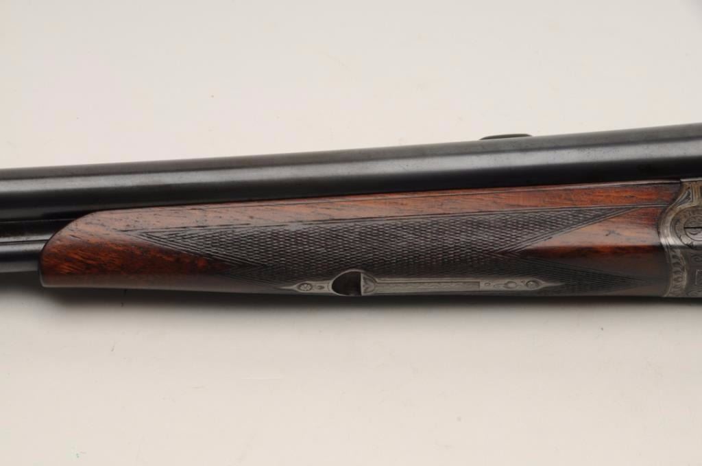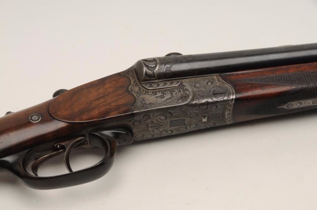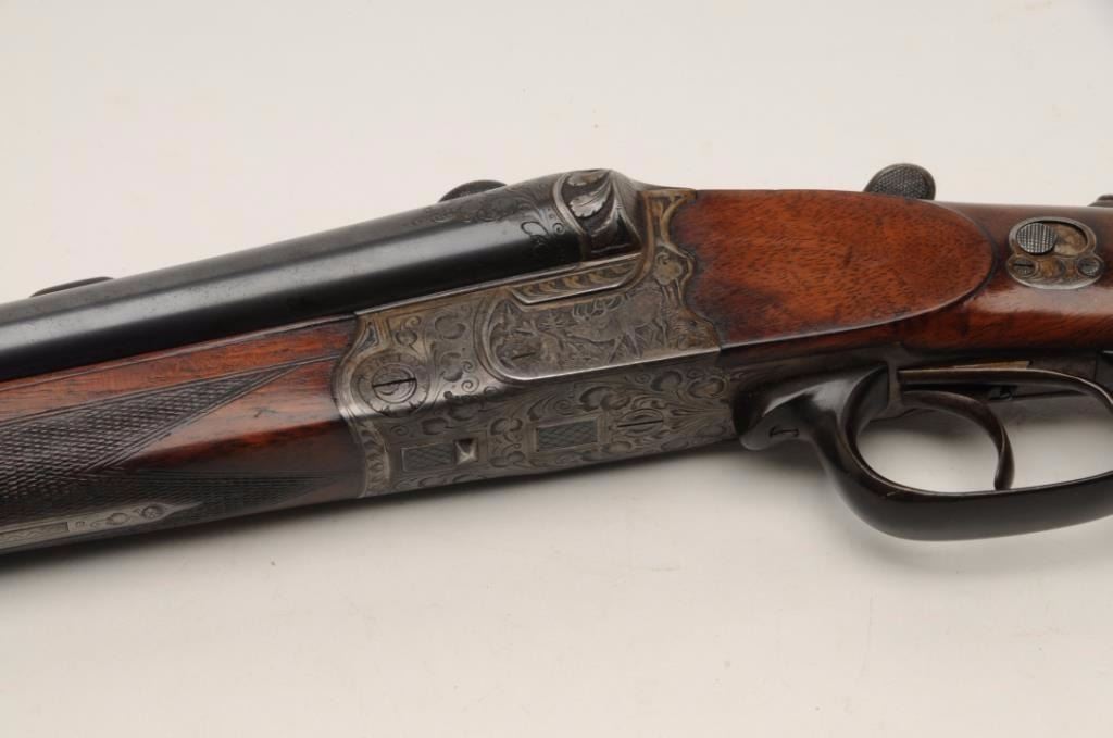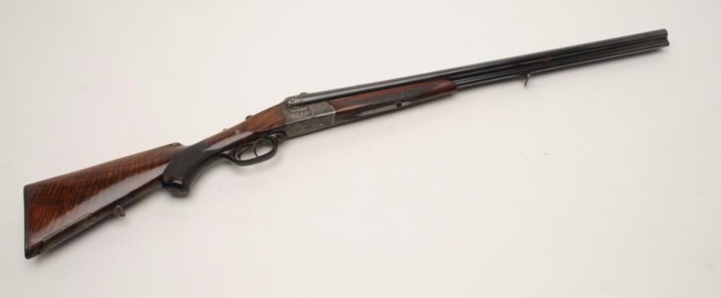 Lot 77 Aug. Jung of Viernau Drilling, 16 gauge and 8mm calibers, serial #2891. The rifle is in very good
