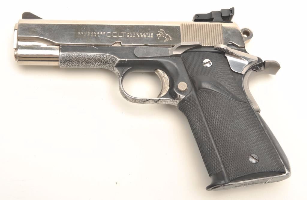 Lot 82 Colt Combat Commander semi-auto pistol, .45 ACP caliber, serial #21068-LW. The pistol is in good