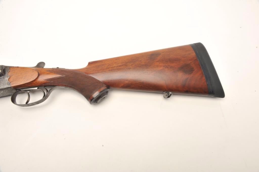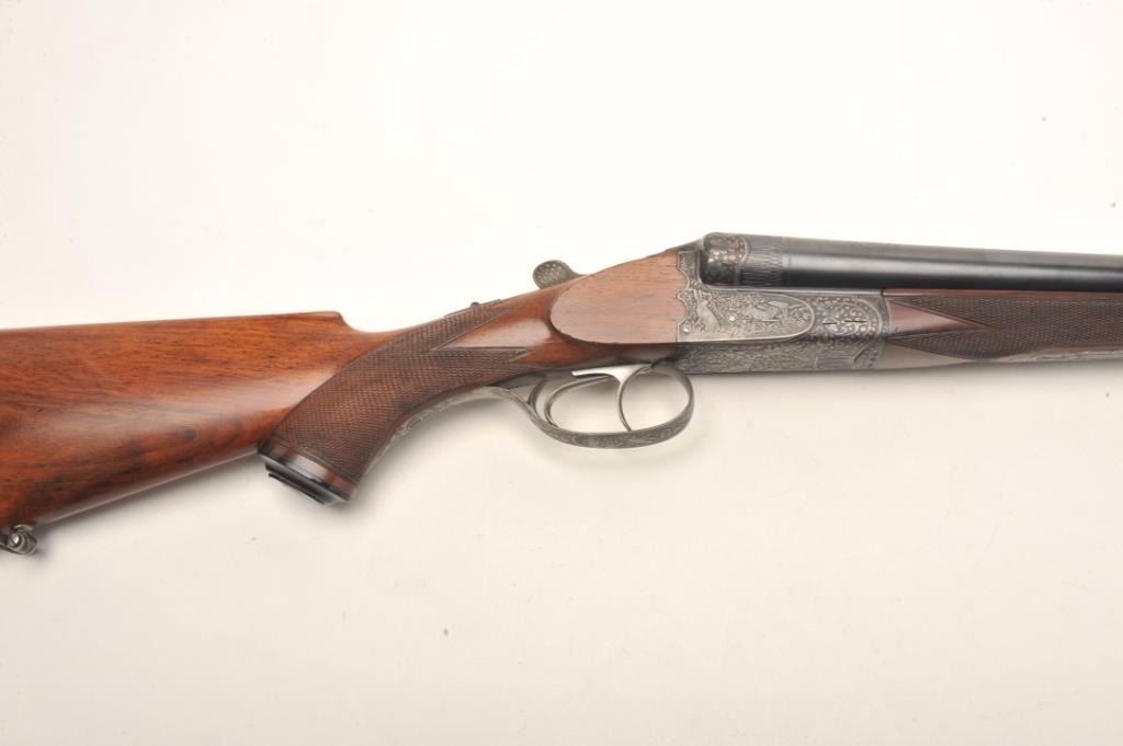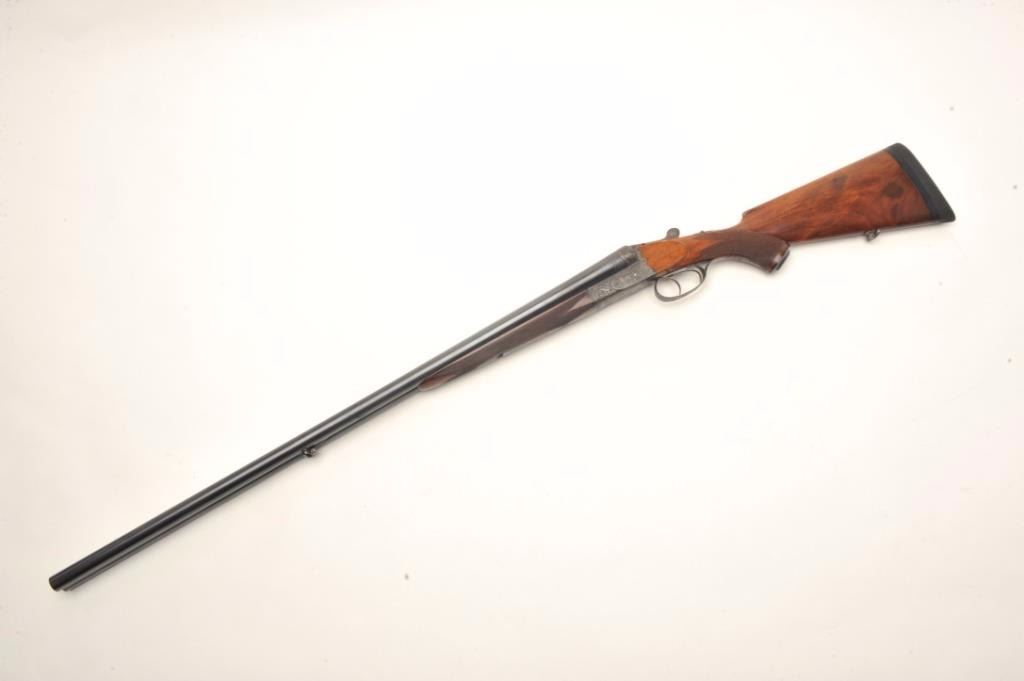Furlach Guild SxS shotgun, 16 gauge, 29” barrels, engraved receiver with three game scene panels, double triggers, checkered wood stocks, Decelerator hard rubber butt pad, LOP from front trigger is 14”, S/N 290, inoverall very good to fine condition with crisp actions, near fine bores, beautiful engraving and wood stocks. (C&R). Est.: $1,600-$3,200.