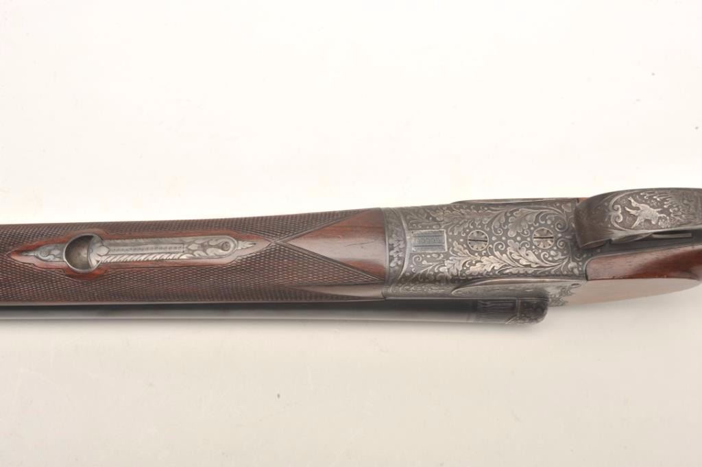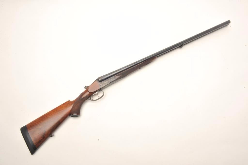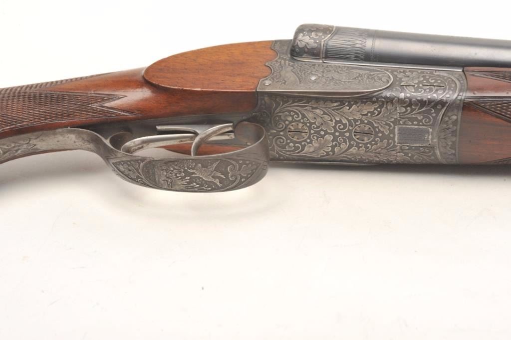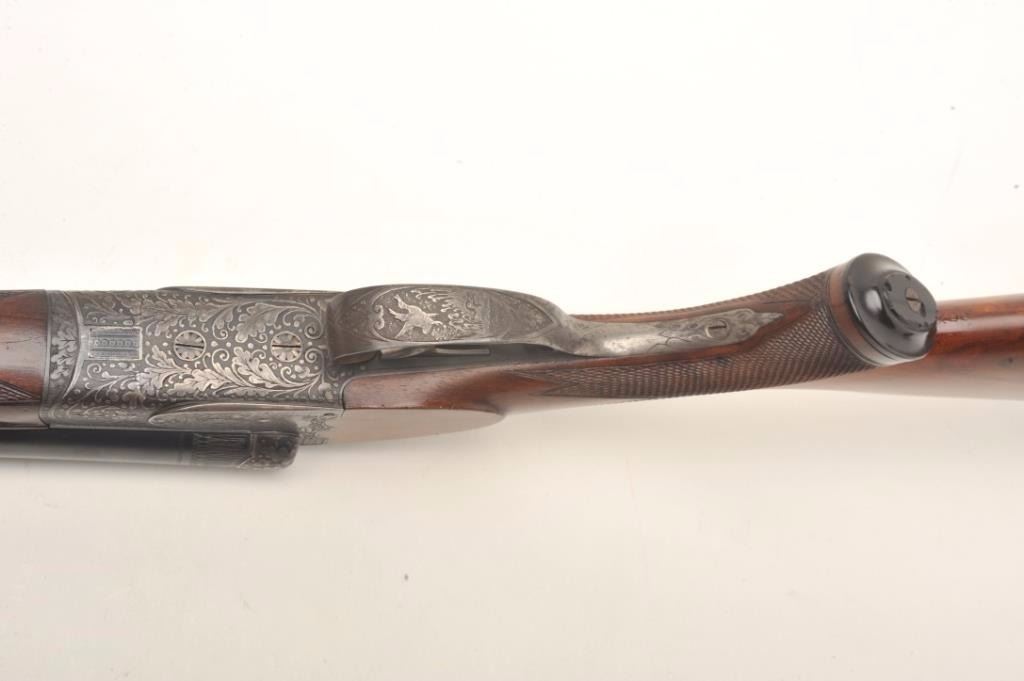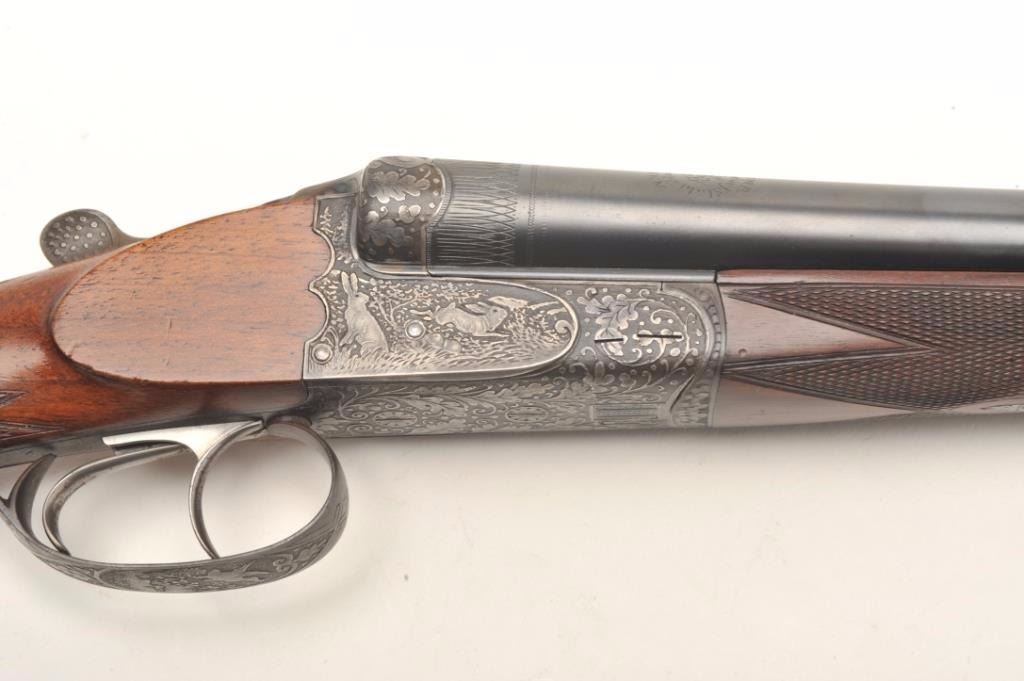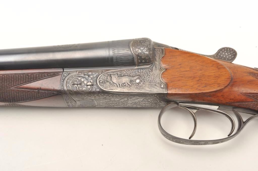 Lot 98 Furlach Guild SxS shotgun, 16 gauge, 29” barrels, engraved receiver with three game scene panels,