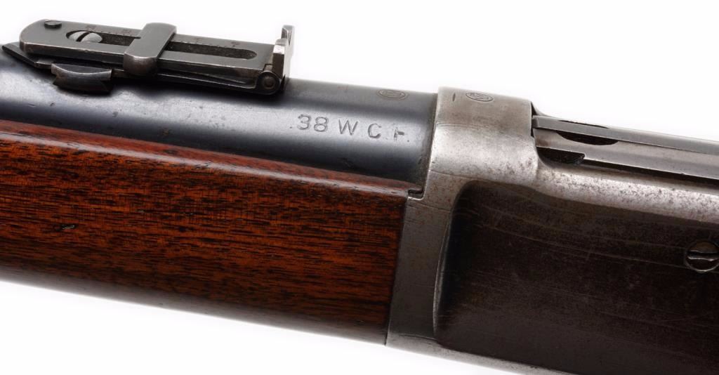 Winchester Model 1892 lever action saddle ring carbine, .38 W.C.F. caliber, 20” barrel, S/N 161154, blued finish, wood stocks in overall very good to near fine condition showing the majority of its original finishon the barrel and loading tube and considerable original blue on the receiver; crisp action, sharp markings, fine bore and very good to near fine wood. Est.: $2,500-$5,000.