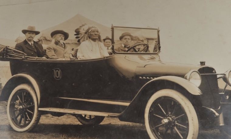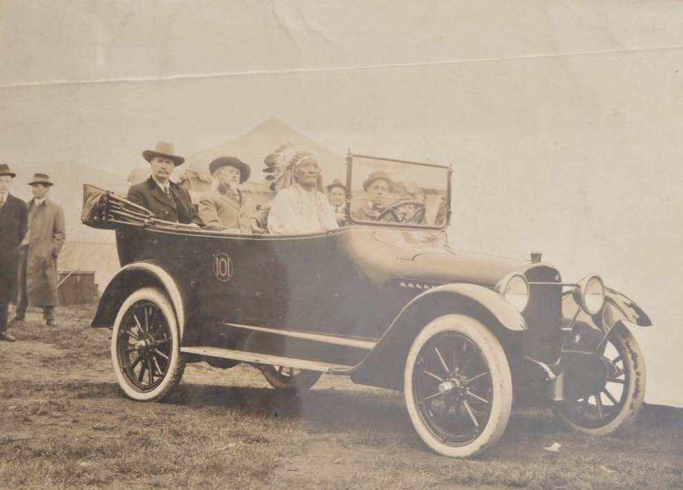 Lot 132c Original photo of Buffalo Bill Cody and an Indian Chief riding in an open touring car with the emb