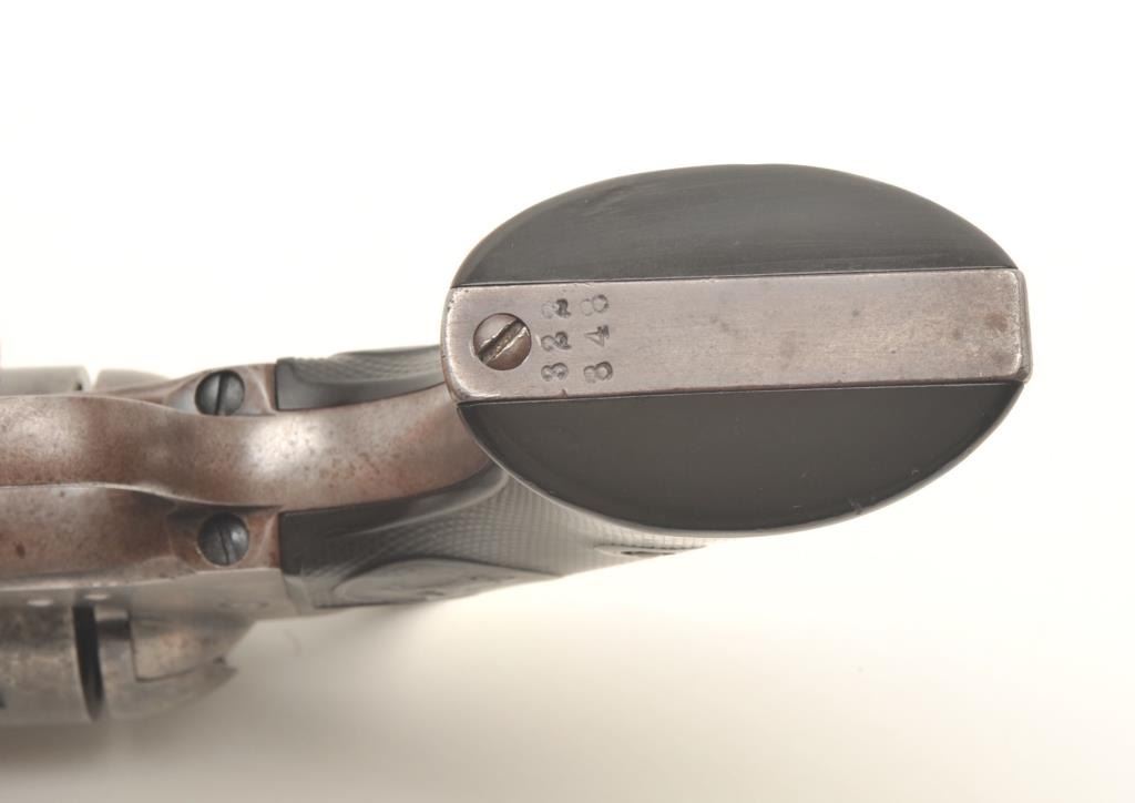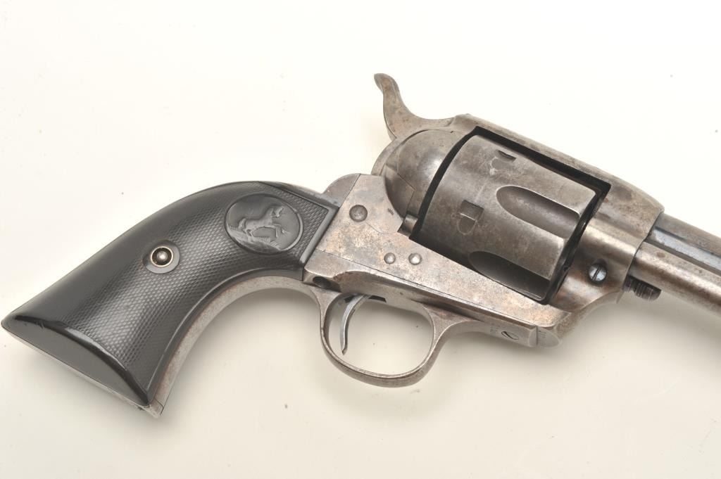 Lot 136 Colt SAA revolver, .38 W.C.F. caliber, 5.5” barrel, blued and case hardened finish, checkered hard