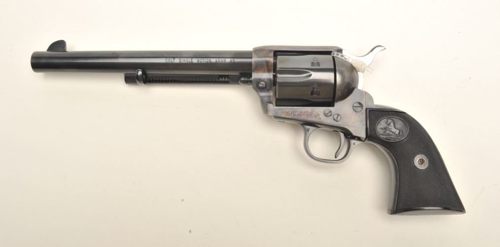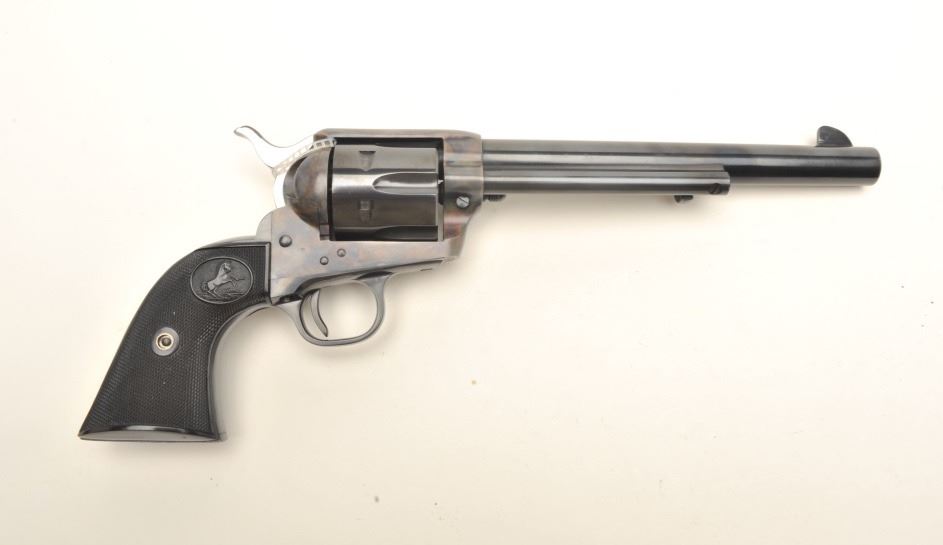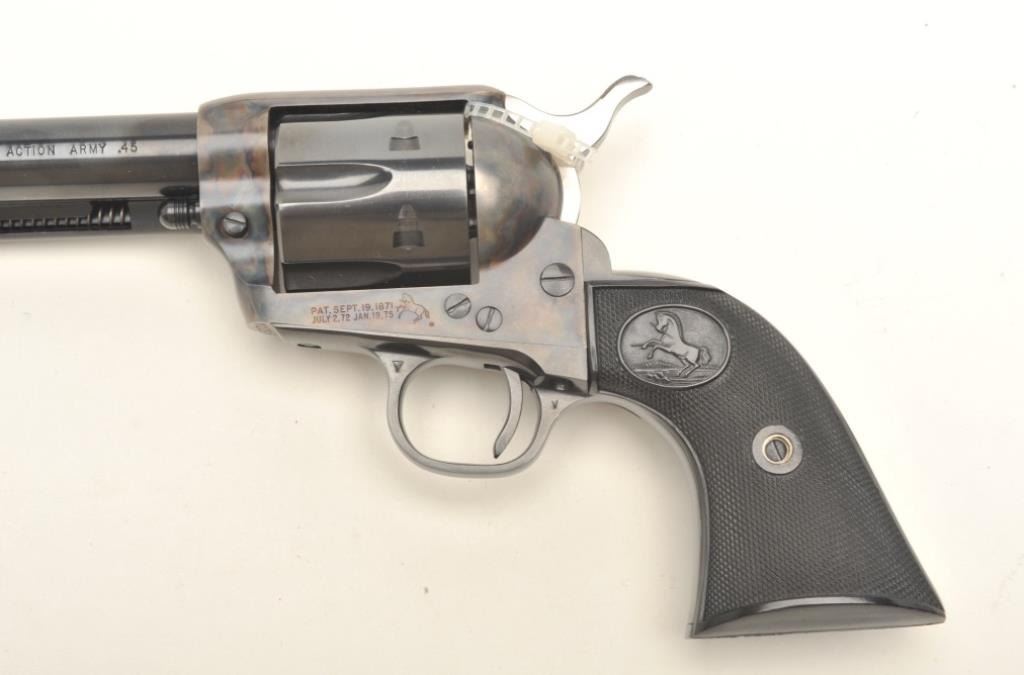 Lot 152 Colt 2nd Generation SAA revolver, .45 caliber, 7.5” barrel, blued and case hardened finish, checke