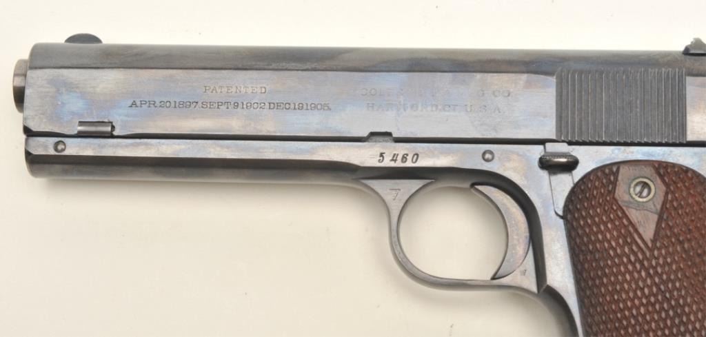 Lot 153 Colt Model 1905 semi-automatic pistol (ca. 1911), .45 Rimless Smokeless caliber, 5” barrel, blued