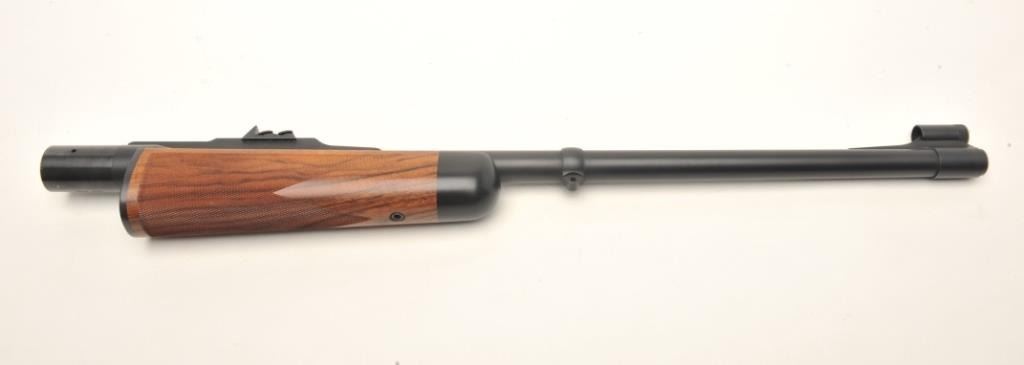 Dakota Arms bolt action rifle, 7mm DAK caliber, 23” round barrel, jeweled bolt, deluxe checkered wood stock, hooded front sight, 3-stage rear sight, S/N TDS0051, accompanied by an extra 24” barrel andcheckered forend in .404 DAK caliber (numbered to this gun) and with matching hooded front sight and 3-stage rear sight. This rifle is in overall like new condition; crisp action, minty bores, beautifullygrained checkered wood stocks. (Modern). Est.: $4,000-$8,000.